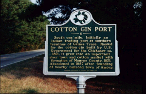 Of Myth and Legend There are a lot of historical facts known about Cotton Gin Port. The ferry was in operation by 1803. Gaines Trace was opened as a road connecting Cotton Gin Port on the Tombigbee to Colbert’s Ferry on the Tennessee in 1810, surveyed along an old Chickasaw trail. The town was incorporated by the Mississippi Legislature in 1838 and reached its height around 1848, at which time it had a carding factory, a flour mill, twenty stores, and a population of approximately five hundred. The flood of 1847-48 damaged the town, and it never really recovered. Cotton Gin Port died in 1887 when the Kansas City, Memphis and Birmingham railroad laid its tracks three miles east and proceeded to sell lots for its new planned town of Amory. In 1971, the Mississippi Department of Archives and History submitted a nomination form to have the “Cotton Gin Port Site” listed on the National Register of Historic Places. These are verifiable facts, and these alone would make Cotton Gin Port an important historical site. It was one of the oldest, if not the oldest, white settlements in North Mississippi. It was a trading post with the Chickasaws. It was a contender for county seat when Monroe County formed in 1821. It was a seat of justice, a post office, and a stage and wagon hub. But the legends about the Cotton Gin Port site are even more interesting and give to the place a sense of deep mystery. The legends surrounding the Cotton Gin Port site extend back into the mists of time and the legends, as much as the history, gives us a sense of place, deeply rooted in the experience of the people of Monroe County. These legends reveal much about the people of the place, and the way that this particular place, in history and in geography, informed their lives. These are the “personal histories” of the people of Monroe County, the local historians, the storytellers. A sense of place infuses the story of Cotton Gin Port. It is such a specific geographical place, and its geography shaped its history and its legends. It was the highest navigational point on the upper Tombigbee, except at certain times of high water when a steamboat might reach to Camargo, another abandoned town fallen to the railroad, on Town Creek. This geographic characteristic shaped the economic destiny of this place: it was a river port for flatboats and then for steamboats shipping goods down the river to Mobile. When the railroad eliminated that need, the port ceased to exist. It was a point where it was apparently easy to cross the Tombigbee River, since several Indian trails did that and it became a ferry, a point on Gaines Trace which was surveyed for the United States government, and a one-lane iron bridge. It was a place sacred and practical to the Chickasaws. They had a village on the bluff west of Cotton Gin Port. They had a mound in the floodplain west of the river. The United States government built the cotton gin here to please them. Tecumseh came here to persuade them to fight the Americans. Bell Mission School was founded here to reach them. So the geography of the place infused it with meaning. The geography shaped the use of the place, shaped its settlement patterns, and shaped its economy. Mother Monroe The history of Monroe County, one of the largest in the state of Mississippi, is kept alive through her people. Everyone is a local historian, a storyteller, a keeper of tradition and legend. William T. Miles, editor and publisher of the Amory Advertiser which compiled a history of Monroe County for the American bicentennial in 1976, wrote in the foreword of the published book, “Monroe County… rich in history, legend, people, and land… This literary effort does not claim to be a learned work but it is valuable because the sources, while usually documented where possible, do rely on material which may have been handed down from generation to generation through folk tales, hearsays, and legends.” Although the Advertiser printed hundreds of extra copies of the original tabloid newspaper section, they could not keep enough copies on hand, and decided to print a more permanent edition in a hard-bound book. The contributors to the special edition were usually local historians. Every little community in the county contributed something, and the stories presented were anecdotal. They wrote about their communities, the businesses, the schools and the churches, both black and white. Cotton Gin Port played a supporting role in Miss Lucille Rogers’ piece, “Amory was Mississippi’s First Planned City.” The first third of her story honors Cotton Gin Port and the article opens with, “Amory has a unique and rich history. Its history is inextricably linked with that of historic Cotton Gin Port, the first White settlement in North Mississippi.” Thus, the first sentences of the collection of articles links back to Cotton Gin Port. The article on Cotton Gin Port separately that appears in this collection is a reprint of one written by Dr. W. A. Evans, an amateur local historian who made some wonderful contributions to Monroe County historical efforts.